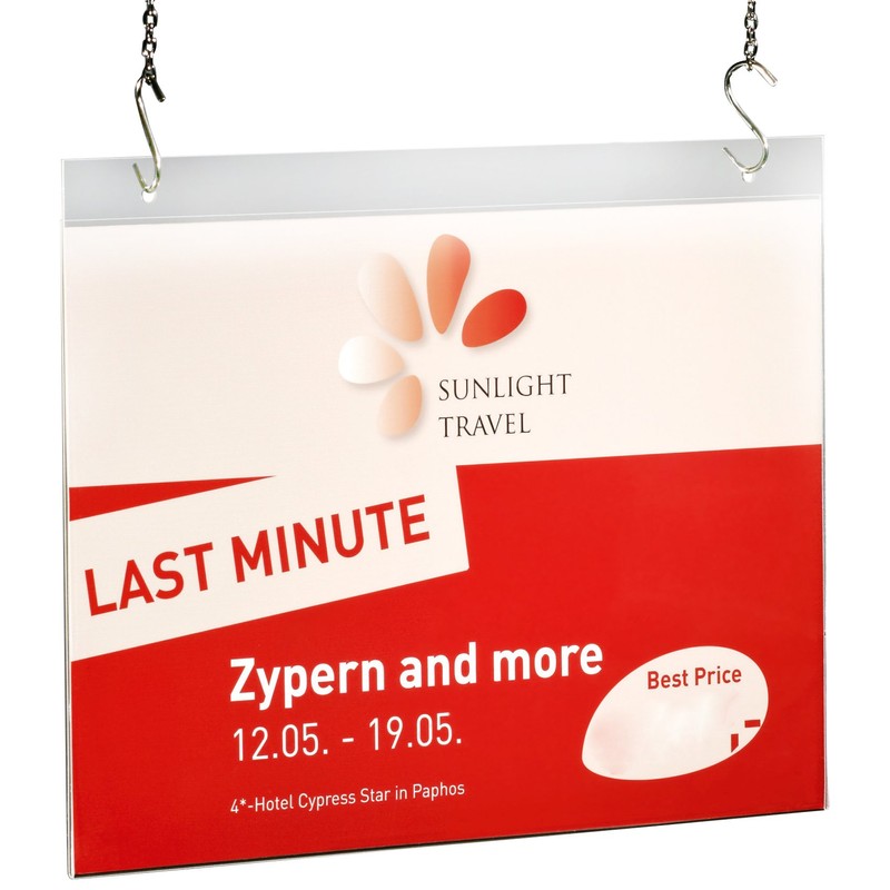 - Information board for promotions, notes or offers in the size DIN A4 landscape