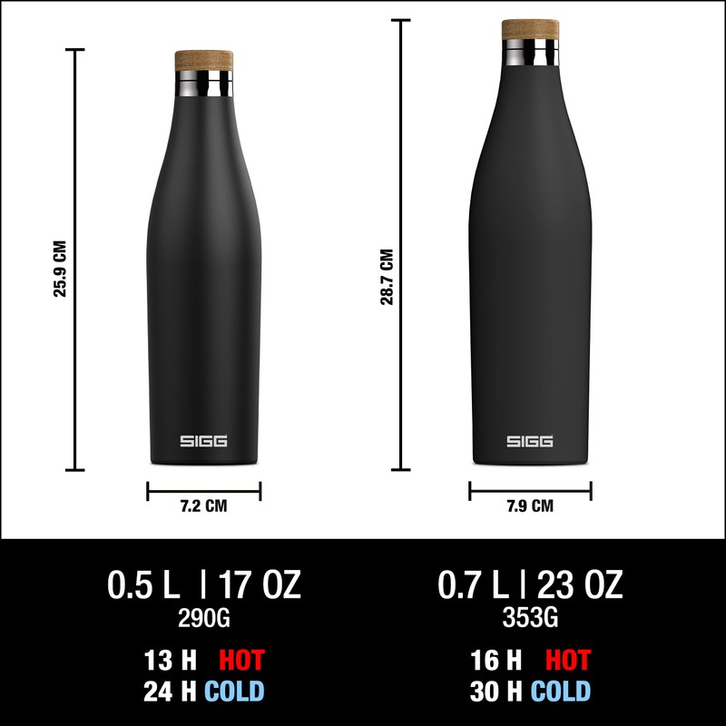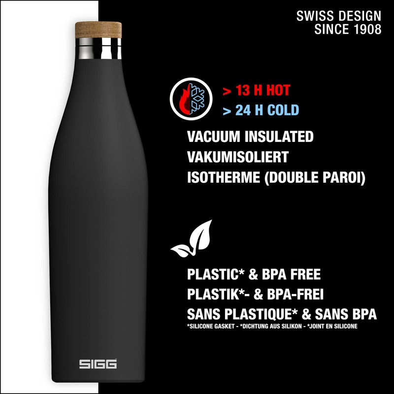 SIGG Meridian Black drinking bottle (0.5 L), pollutant-free and leak-proof water bottle made of stainless steel, double-wall insulated bottle for cold and hot drinks