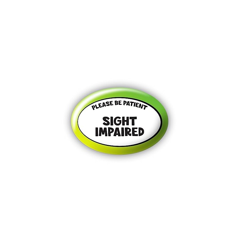 "Sight Impaired" Please Be Patient - Large Pin Button Badge - Disability Awareness Aid