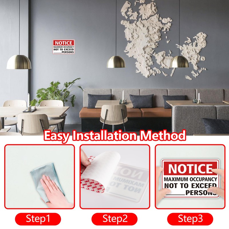 • The rounded corners and burr free corners of Maximum Occupancy Sign have been safely treated. For Easy Mounting is Standard. Suitable for Use Business, Restaurant, Hall, Apartment etc.