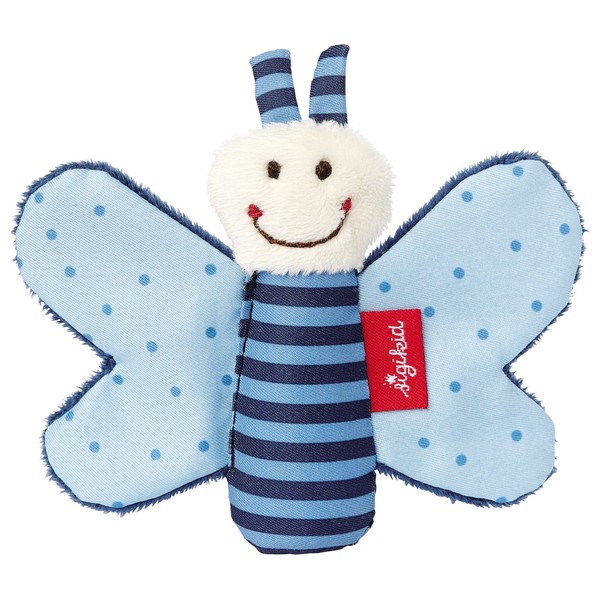 - Box contents: 1 Sigikid butterfly grasping toy, outer material/filling material: polyester, colour: blue, recommended age: 0 - 18 months, size (L x W x H): 9 x 12 x 2 cm, item number: 41180