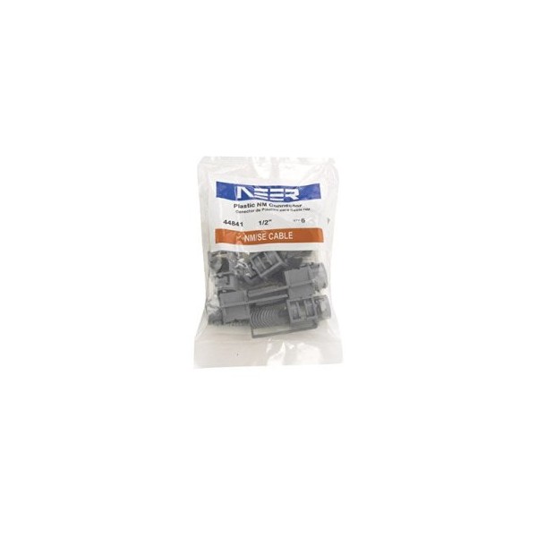 The Sigma ProConnex Plastic NM Cable Connectors are used to terminate NM Sheathed Cable or Flexible Cord to a 1/2-in knockout in a dry location box or enclosure. This snap-in design provides easy installation for a wide variety of cable configurations. Terminates NM Cable or Flexible Cord to a 1/2-in knockout For 14/2 - 8/2 NM Cable or 0.29-in - 0.59-in (diameter) Flexible Cord Easy snap-in installation 3/8 - 1/2-in trade size Non-metallic construction Product is cULus listed Includes 6 pieces per bag