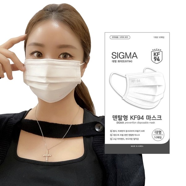 Sigma KF94 Dental Type Summer Quarantine Mask Large White White 100 Pieces / 시그마 KF94 덴탈형 여름 방역 마스크 대형 화이트 100매입