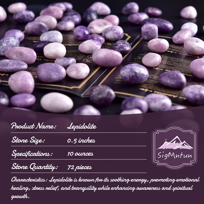 SigMntun Polished Lepidolite Crystals Stone Set - 72 Pcs, 0.5" Handpicked Natural Tumbled Gemstones Rocks Agate Jasper, Pebbles for Reiki, Chakra, Healing Home Decor