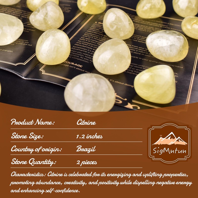 SigMntun SigMntun Polished Citrine Crystal Stones - 2 Pieces of 1.2-Inch Super Large Handpicked Natural Tumbled Gemstones for Reiki, Chakra Healing, and Home Decor