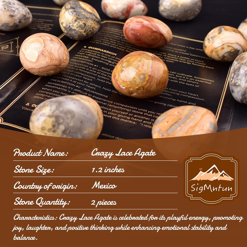 SigMntun SigMntun Polished Crazy Lace Agate Crystal Stones - 2 Pieces 1.2 inches Super Large Handpicked Natural Tumbled Gemstones for Reiki, Chakra Healing, and Home Decor