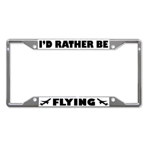 Sign Destination Metal Insert License Plate Frame I'd Rather Be Flying Style B Weatherproof Car Accessories Chrome 4 Holes Solid Insert 1 Frame