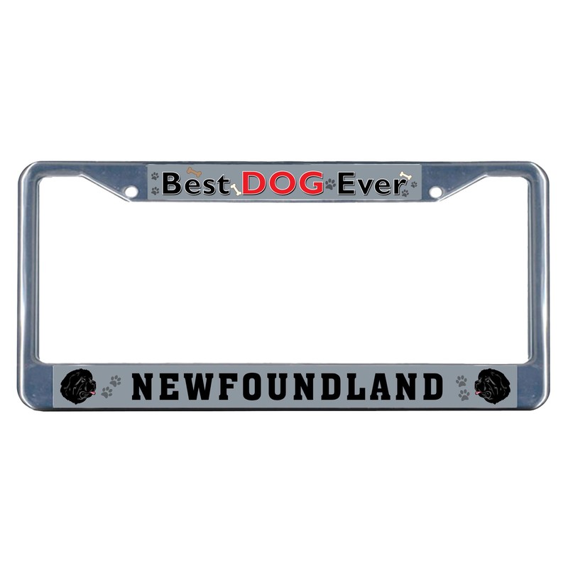 Sign Destination Metal License Plate Frame Solid Insert Newfoundland Dog Best Dog Ever Car Auto Tag Holder Chrome 2 Holes One Frame