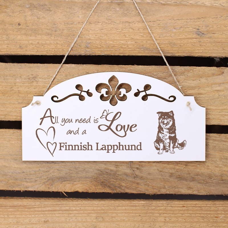 Sign Finnish Lapphund Decoration 20 x 10 cm - All you need is Love and a Finnish Lapphund - Wooden Wall Decoration Wall