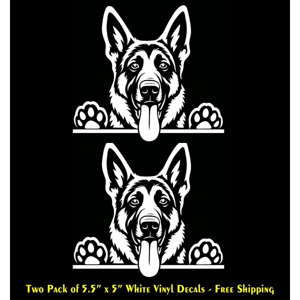 Signage Cafe German Shepherd Two White Vinyl Decals Car Truck Bumper Door Any Flat Surface