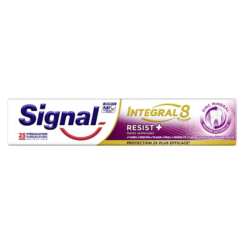 - The mineral serum in the Signal Integral 8 Resist+ toothpaste strengthens the teeth thanks to renewed tooth enamels