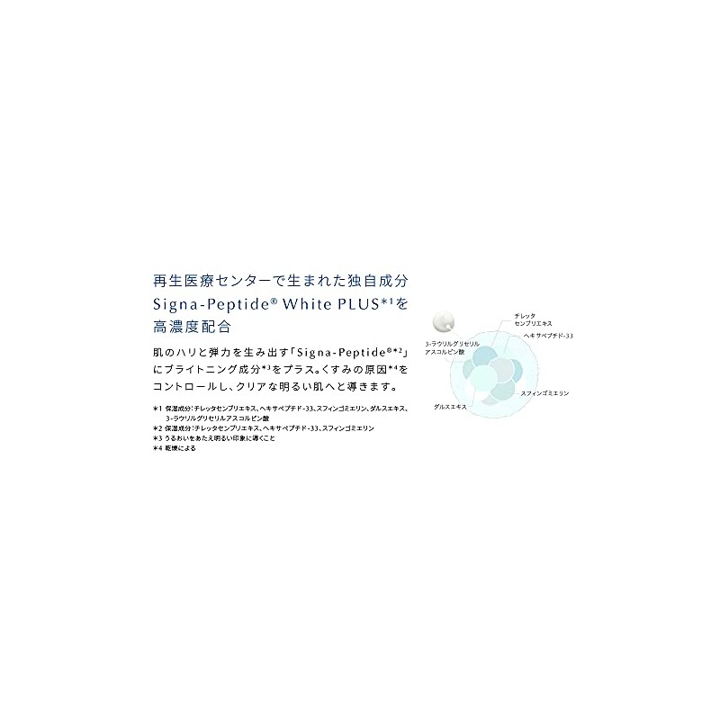 - Uses signa peptide white plus 1 x useful ingredient developed by a regenerative medical center in Japan.