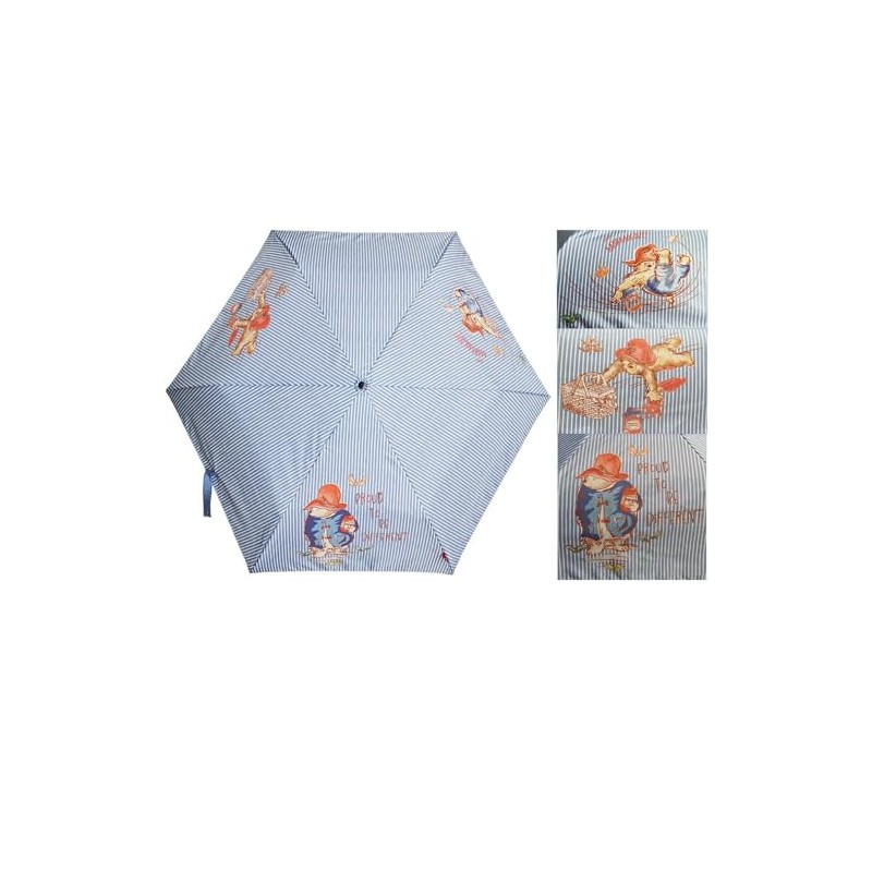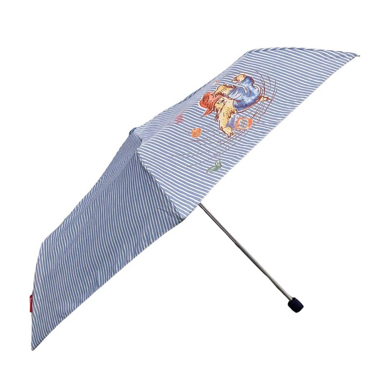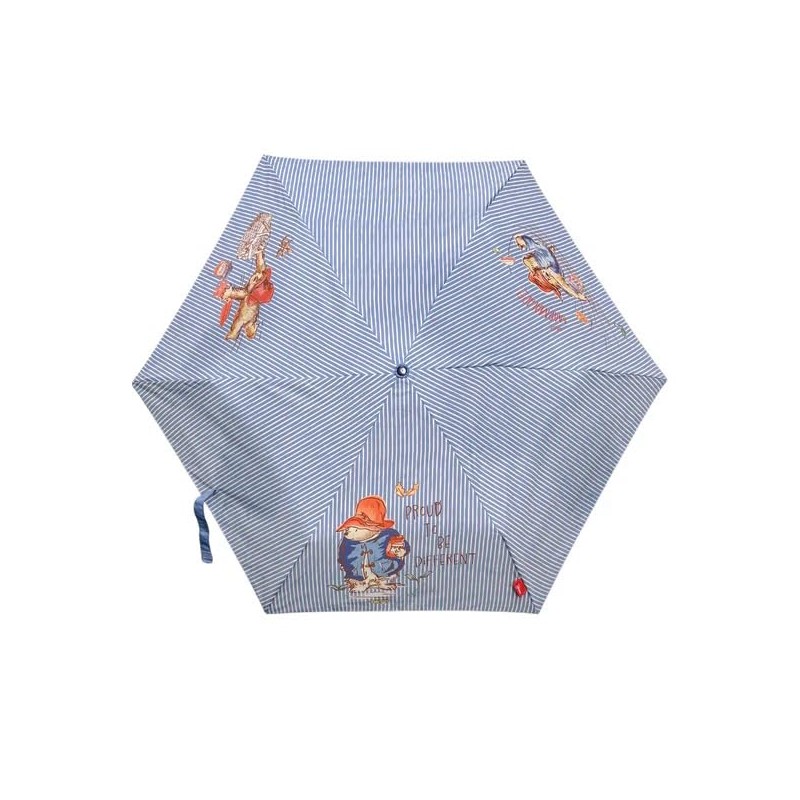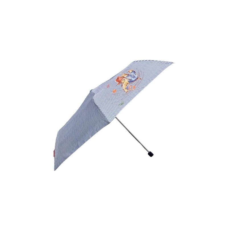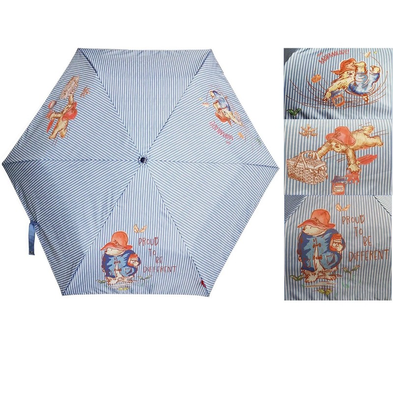Signare Paddington Bear Classic Marmalade Compact Folding Umbrella with Sleeve and Wrist Strap, Light Blue & White Stripe