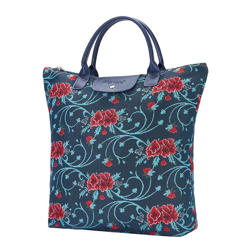 Signare Tapestry Foldable Tote Bag, Reusable Shopping Bag, Grocery Bag with Mexican Folk Art Design, Frida Kahlo Carnation