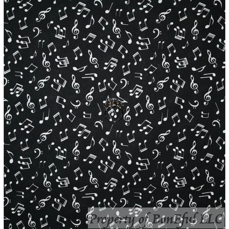 Signature BonEful Fabric FQ Cotton Quilt Black White B&W Music Note Small Little Calico US