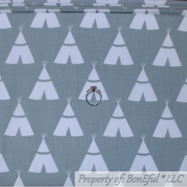 Signature BonEful FABRIC FQ Cotton Quilt Gray White Teepee Tent Indian Stripe Aztec Boy US