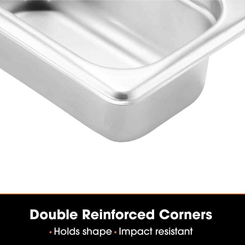 - ✅ FUNCTIONAL CORNERS – Double reinforced corners around the top of the pans are designed for added strength, to maintain the shape of the pan use after use and even upon impact. The rounded bottom corners allow spoons, spoodles and scoops to get right in and serve every last amount of food to maximize yields. The rounded corner design also means that these pans are easy to clean.