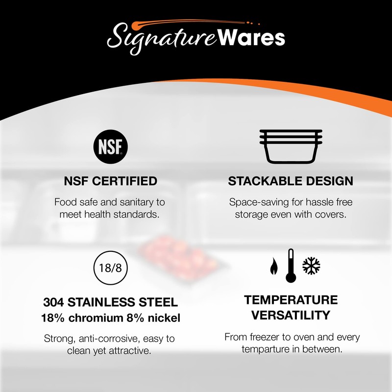 - ✅ VERSATILITY – These pans can go from freezer to oven and every temperature in between. Making them the perfect choice for storage, prep, baking, roasting, holding (hot and cold) and poaching. Pair with a cover (sold separately) for maximum versatility.