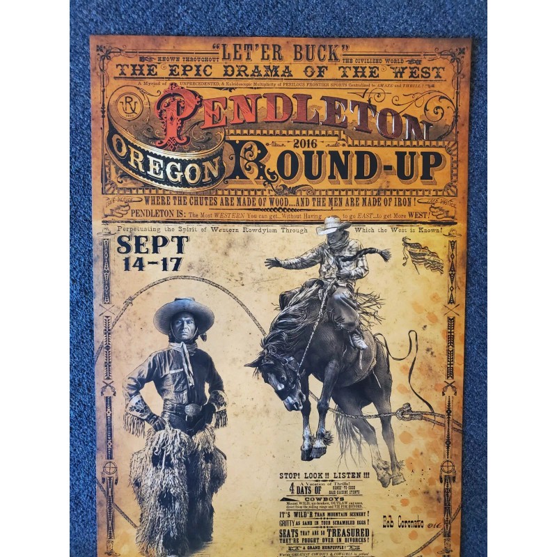 *signed* Pendleton Round Up Rodeo poster by Bob Coronato Oregon Jackson Sundown