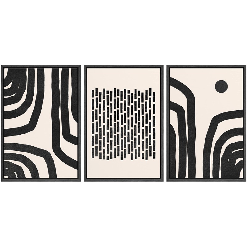 SIGNLEADER Framed Canvas Print Wall Art Line Art and Spirals Abstract Shapes Illustrations Minimalist Edgy Black and White for Living Room, Bedroom, Office - 24"x36"x3 BLACK