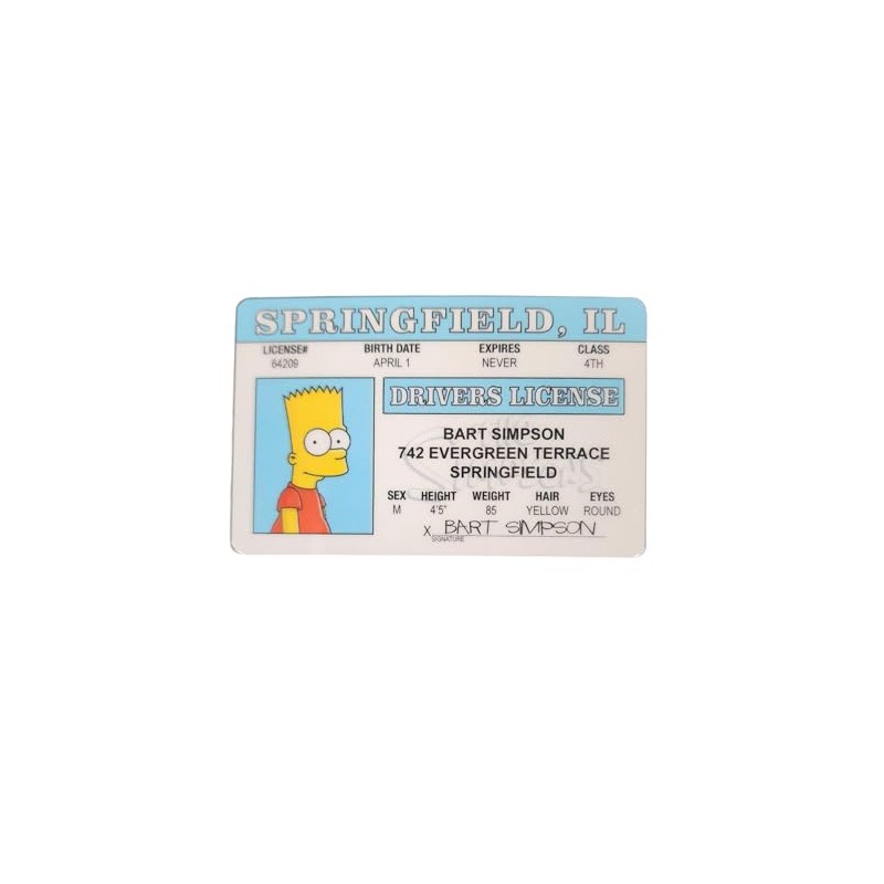 Signs 4 Fun Parody ID | Bart Driver’s License | Fake ID Novelty Card | Collectible Trading Card Driver’s License | Novelty Gift for Holidays | Made in the USA