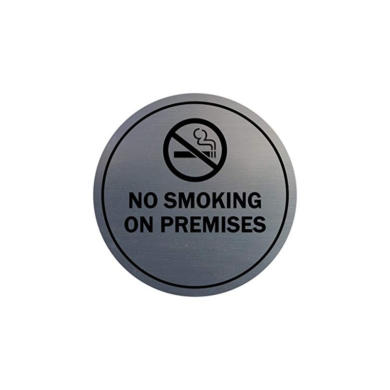 Signs ByLITA Circle No Smoking on Premises Sign with Adhesive Tape, Mounts On Any Surface, Weather Resistant, Indoor/Outdoor Use (Brushed Silver) - Medium