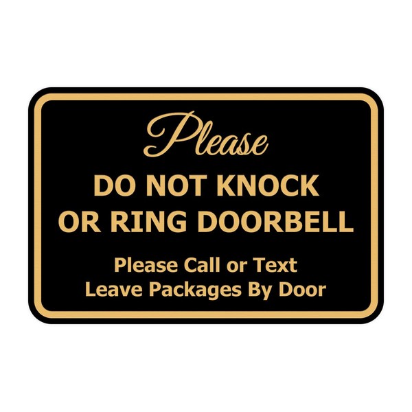 Signs ByLITA Classic Framed Please Do Not Knock Or Ring Doorbell Wall or Door Sign - Easy Installation | Mail Delivery Instruction | Do Not Disturb (Black Gold) - Large 1 Pack