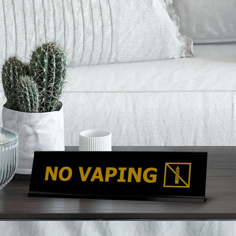 Signs ByLITA No Vaping, Gold Black Frame, Desk Sign (2x8")