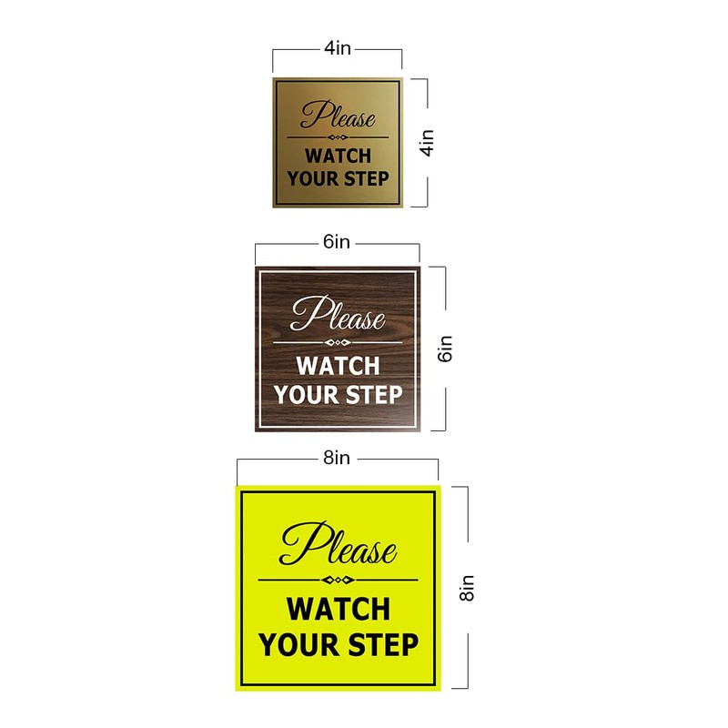 Signs ByLITA Square Classy Please Watch Your Step Sign | Safety Sign with Easy Installation (Black) - Medium 2 Pack