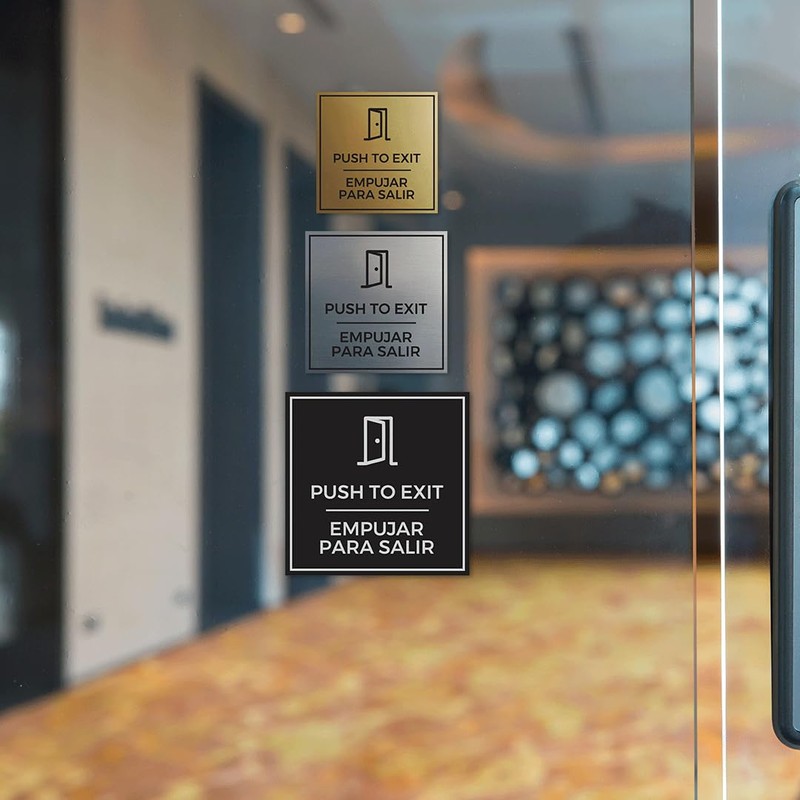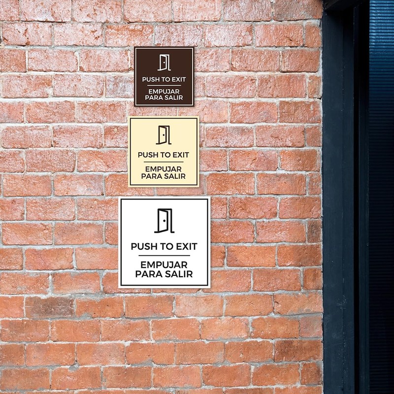 Signs ByLITA Square Push To Exit Door or Wall Sign | Spanish Bilingual Business And Office Signs (Red) - Small