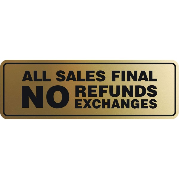 Signs ByLITA Standard All Sales Final No Refunds No Exchanges Sign(Brushed Gold) - Large 1 Pack