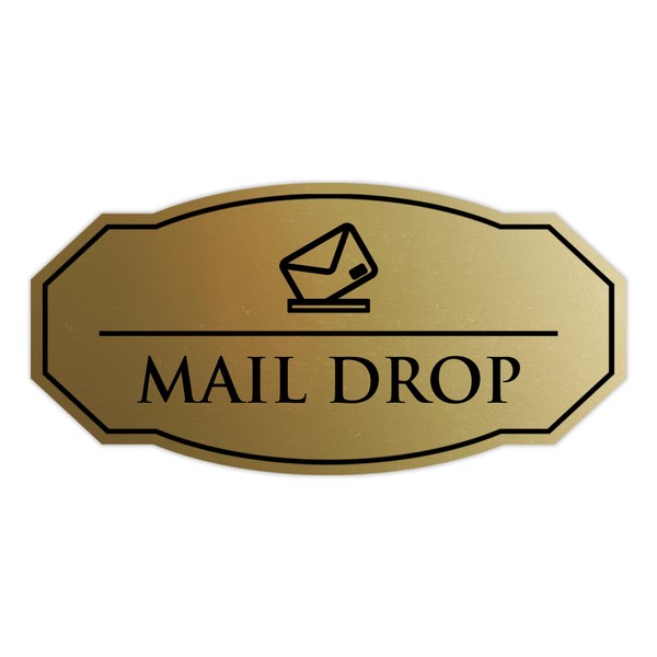 Signs ByLITA Victorian Mail Drop Durable ABS Plastic | Laser Engraved | Easy Installation | Elegant Design Sign (Brushed Gold) - Small 2 Pack