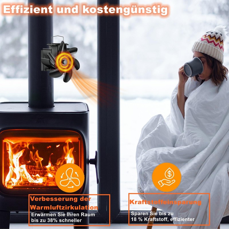 - Fireplace Fan Magnetic: 6 reinforced blades made of rust-proof anodised aluminium with excellent thermal conductivity for faster speeds, higher airflow and lower start-up temperatures for an efficient heat spreader.