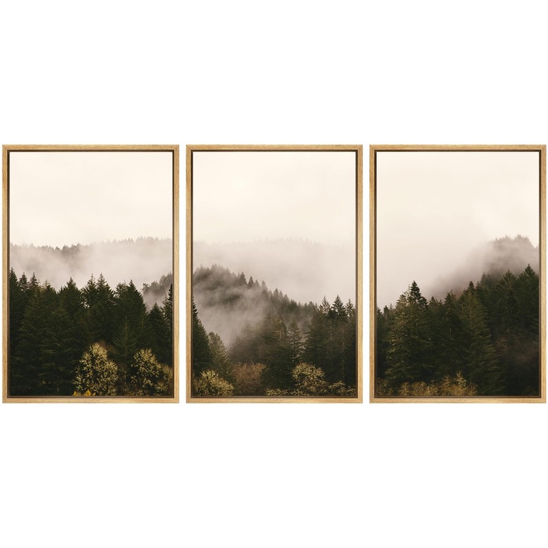 SIGNWIN 3 Piece Framed Canvas Wall Art Brown Foggy Mountains Nature Wilderness Photography Abstract Rustic Canvas Prints Home Artwork Decoration for Living Room,Bedroom - 16"x24"x3 Natural