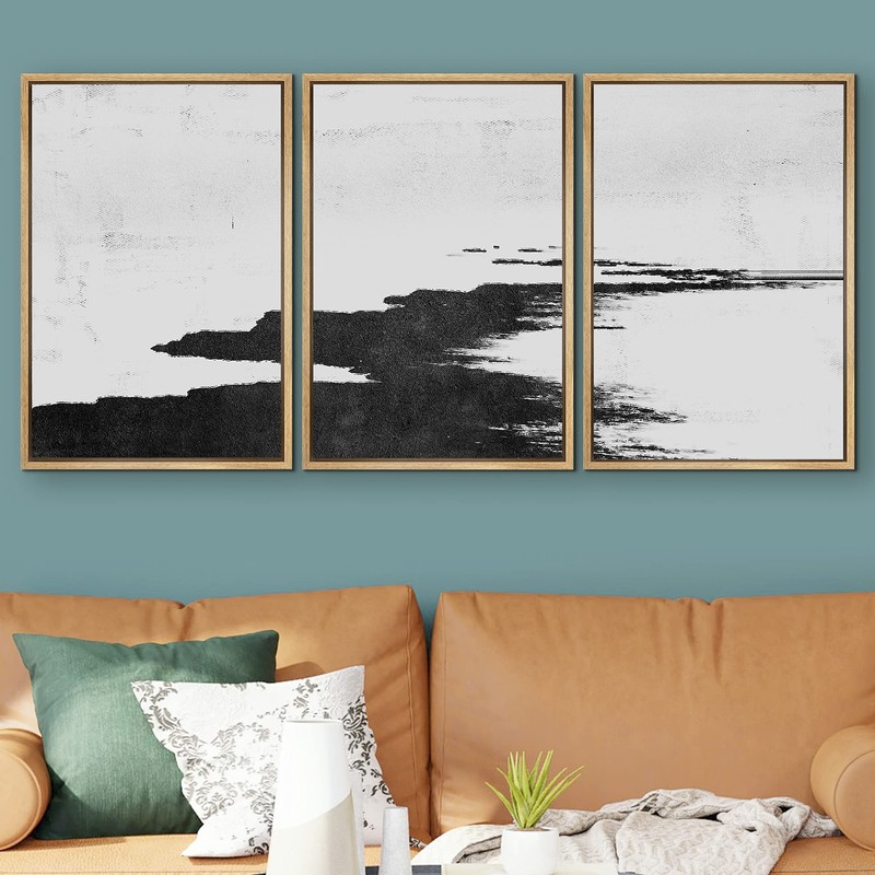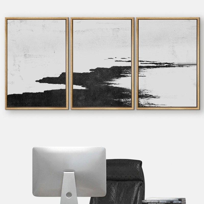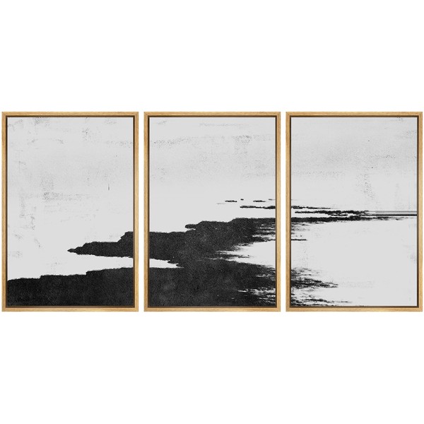 SIGNWIN Framed Canvas Print Wall Art Dark Path Along The Shore Abstract Shapes Illustrations Modern Art Minimalist Relax/Calm Black and White for Living Room, Bedroom, Office - 16"x24"x3 Natural