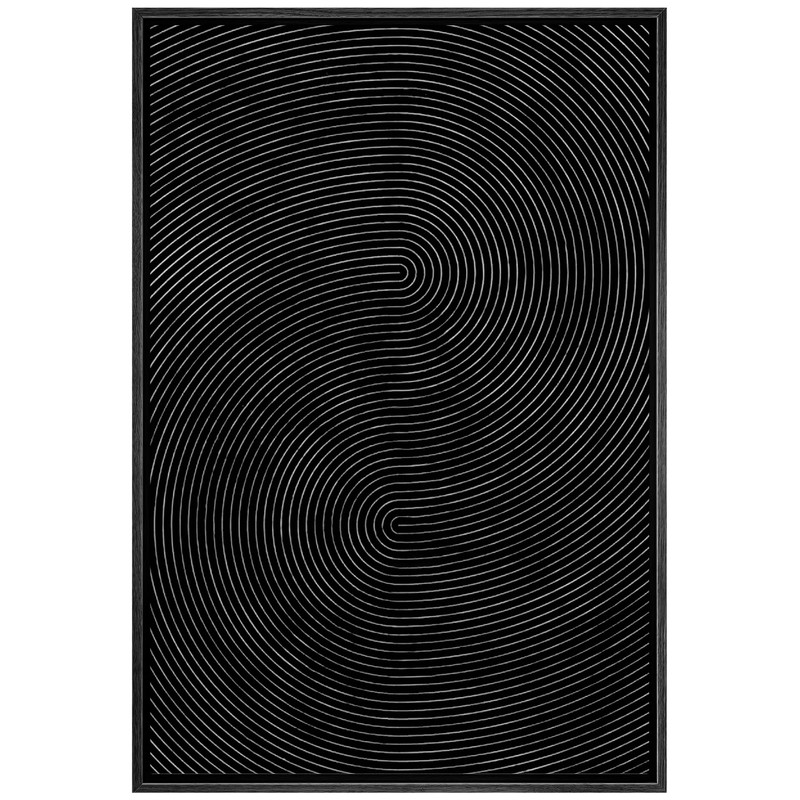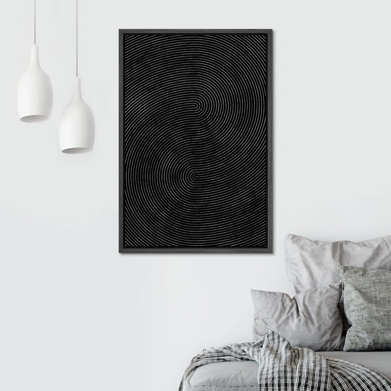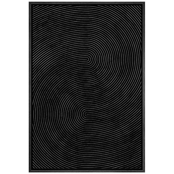 SIGNWIN Framed Canvas Print Wall Art Geometric Dark Black 3D Wave Landscape Abstract Shapes Illustrations Minimalism Contemporary Nordic Decorative for Living Room, Bedroom, Office - 24"x36" Black