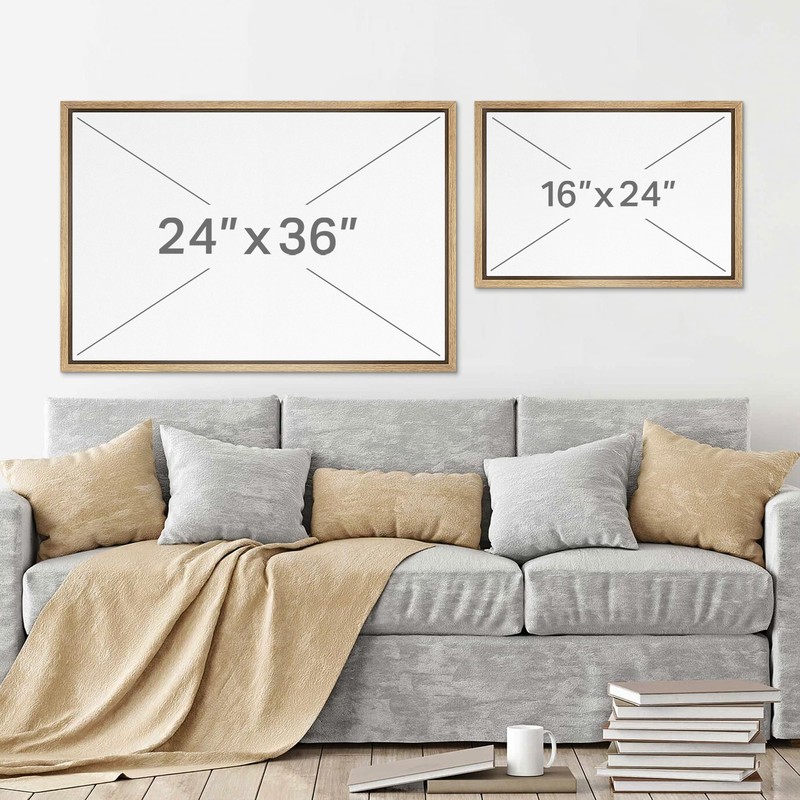 Our artwork comes with different sizing options. Measure your wall, then pick the appropriate size. Hanging is made simple with our complimentary hanging accessory toolkit.