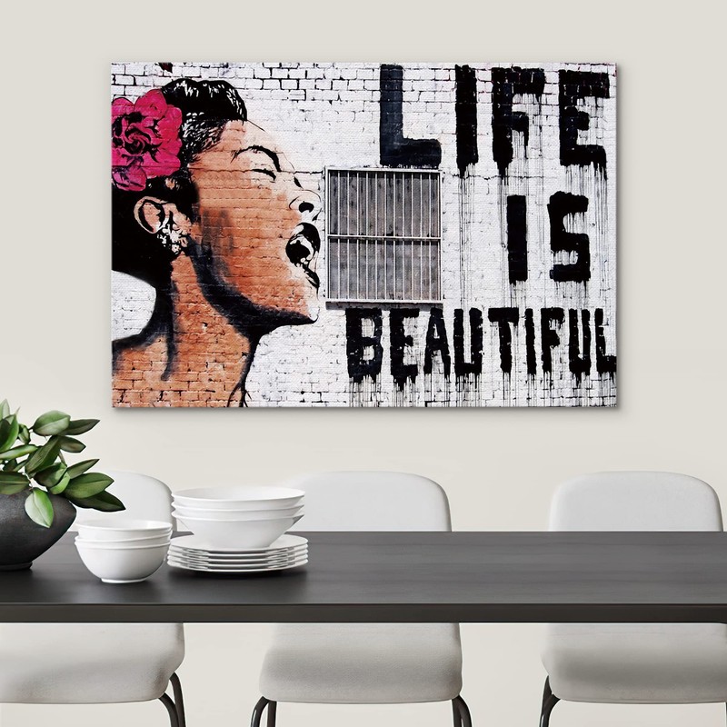 SIGNWIN Framed Canvas Wall Art Banksy Life is Beautiful Billie Holiday Graffi...