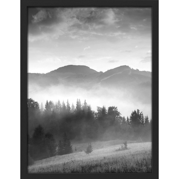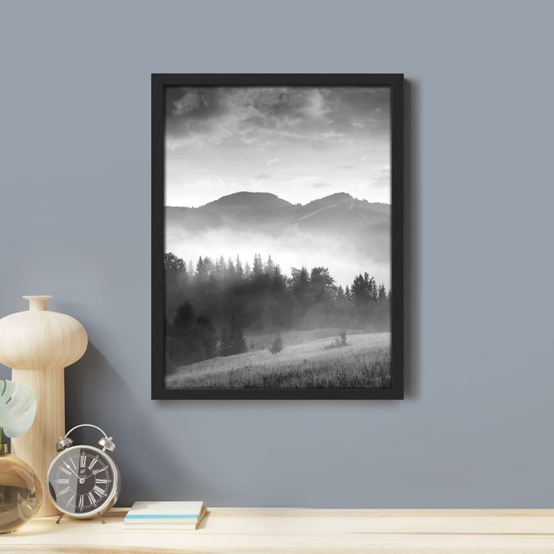 SIGNWIN Framed Forest Trees Wall Art, Black & White Misty Mountain Range Wall Decor Prints, Nature Wilderness Wall Décor for Living Room, Bedroom - 12"x16" Black