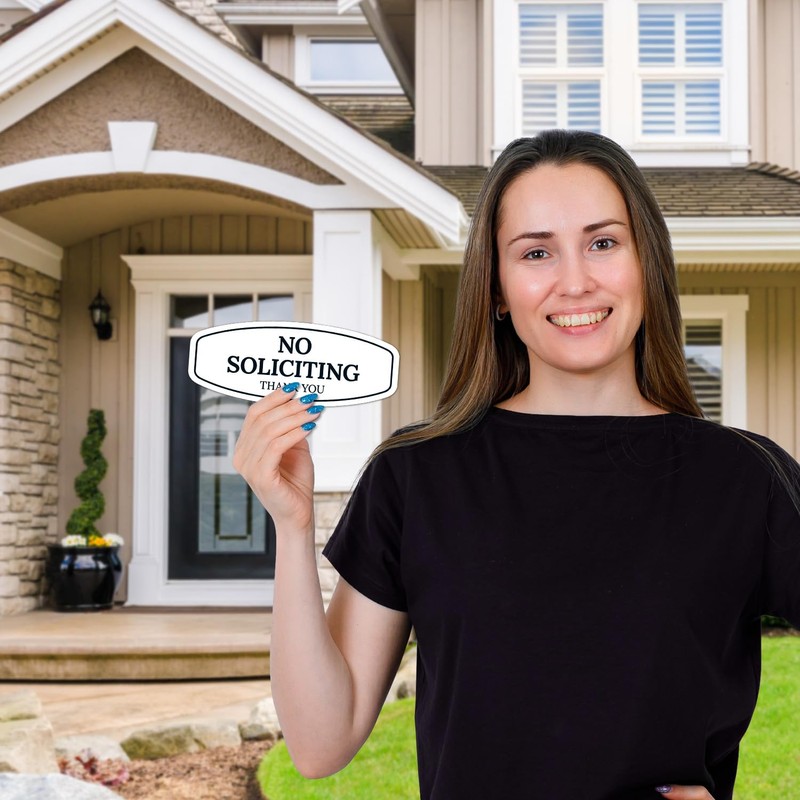 Sigo Signs No Soliciting Sign For House, Front Door Indoor/Outdoor, Weather Resistant 2x5 Inches, ACM Made in USA