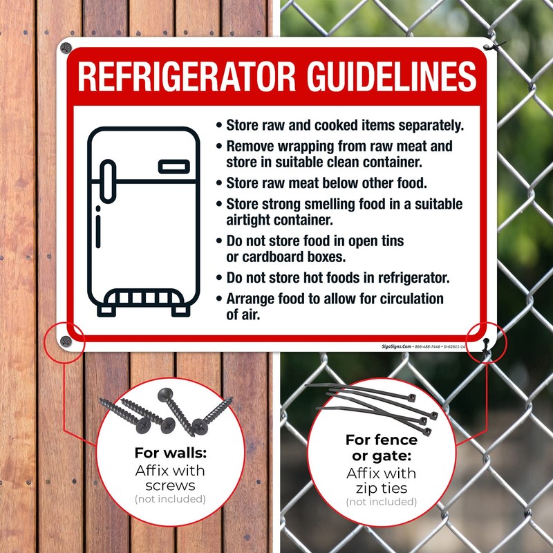 Sigo Signs, Refrigerator Guidelines Sign, 10x14 Inches, Rust Free .040 Aluminum, Fade Resistant, Made in USA