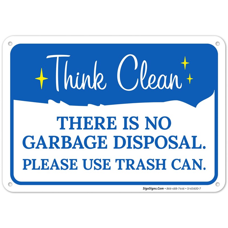 Sigo Signs There is No Garbage Disposal Please Use Trash Can Sign, 10x7 Inches, 55 mil Thick HDPS (high Density polystyrene), Made in USA