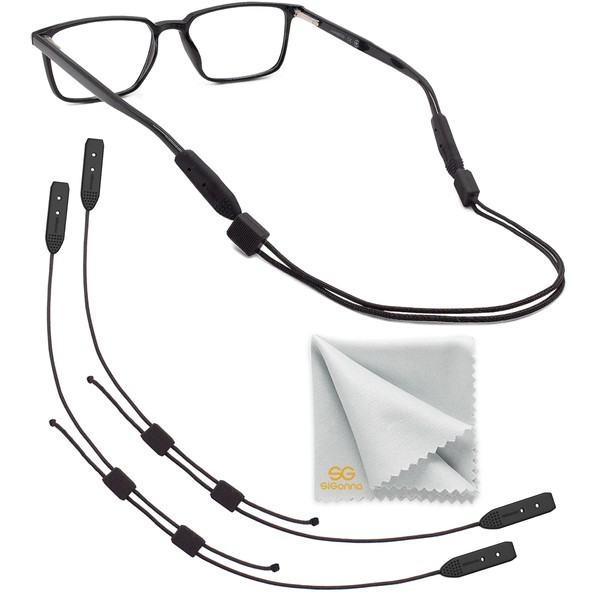 SIGONNA Sunglasses Holder Strap - Glasse Strap Eyewear Retainer No Tail Adjustable - 2 Eyeglasses String Holder - Bonus Glasses Cleaning Cloth