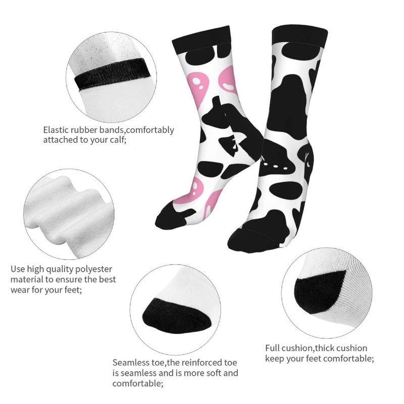 Sigouyinei Black And White Cow Print Love Heart Cute Pink Casual Funny Funky Novelty Socks For Men Women
