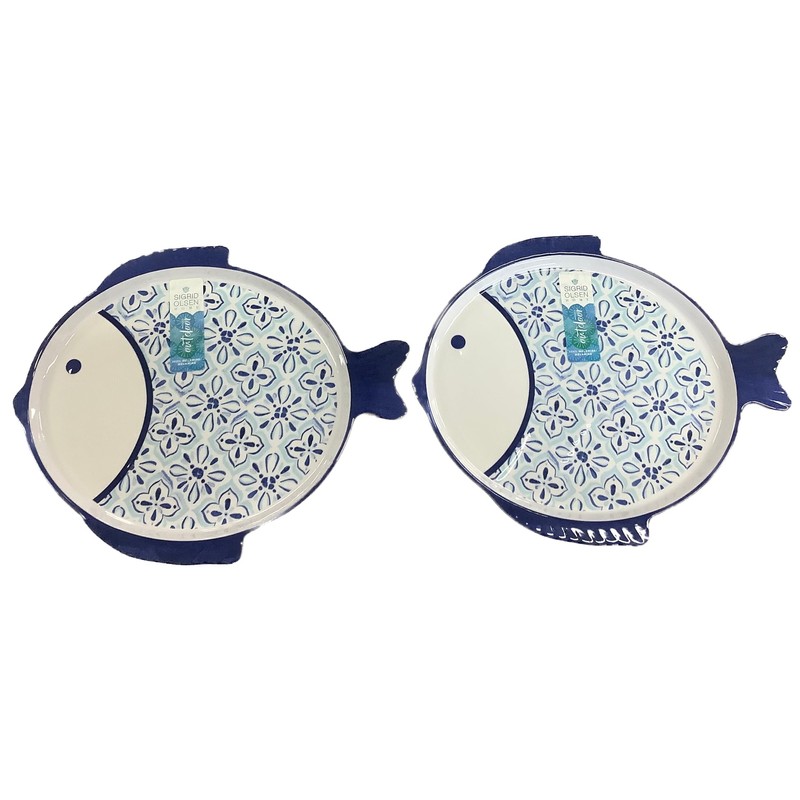 Sigrid Olsen Melamine Fish Plates (Blue & White Fish Shaped Plate, Dinner Plate, 2 pack)