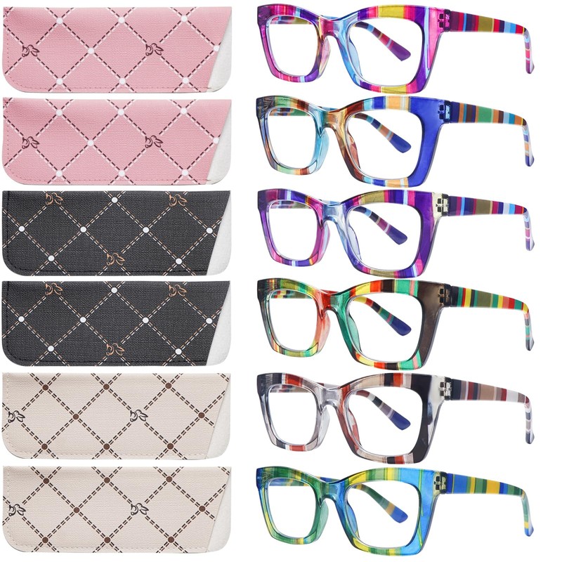 SIGVAN 6 Pack Oprah Style Reading Glasses Blue Light Blocking Square Computer Spring Hinge Readers for Women (6 Mix-1, 2.75, multiplier_x)