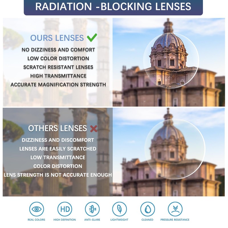 • [Anti Blue Ray Reader] Blue light blocker and UV400 Lens reduces visual fatigue and discomfort of working under mobile phones, tablets, games, and fluorescent lights with UVA / UVB protection and glare reduction. Significantly reduces eye strain and anti-Blu-ray. Enjoy digital time. No worries about eye fatigue, blurred vision or headaches.