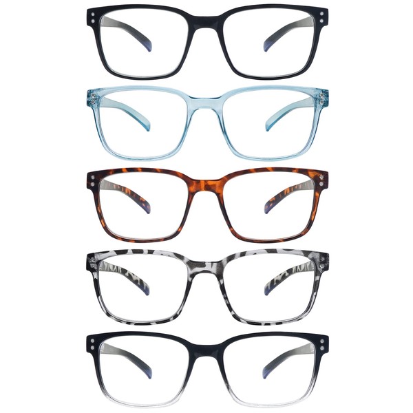 SIGVAN Blue Light Blocking Reading Glasses for Men Women Computer Spring Hinge Readers Square Frame Glasses 5 Packs (5C, 3.0)