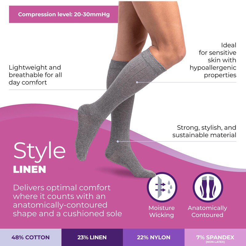 Sigvaris Women's Style Linen Compression Socks 20-30mmHg - Hypoallergenic, Lightweight, Breathable & Sustainable - Small Short - Light Grey