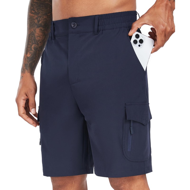 - COMFORTABLE FIT & CLOSURE The classic design of cargo shorts men with button closure and zipper strip provides flexibility at the waist for a custom fit. Flat seams reduce friction and provide extra comfort and an effortless movement experience.